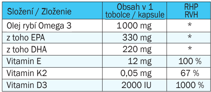 SLOŽENÍ OMEGA 3 + vitamin D, vitamin K2 a Vitamin E: